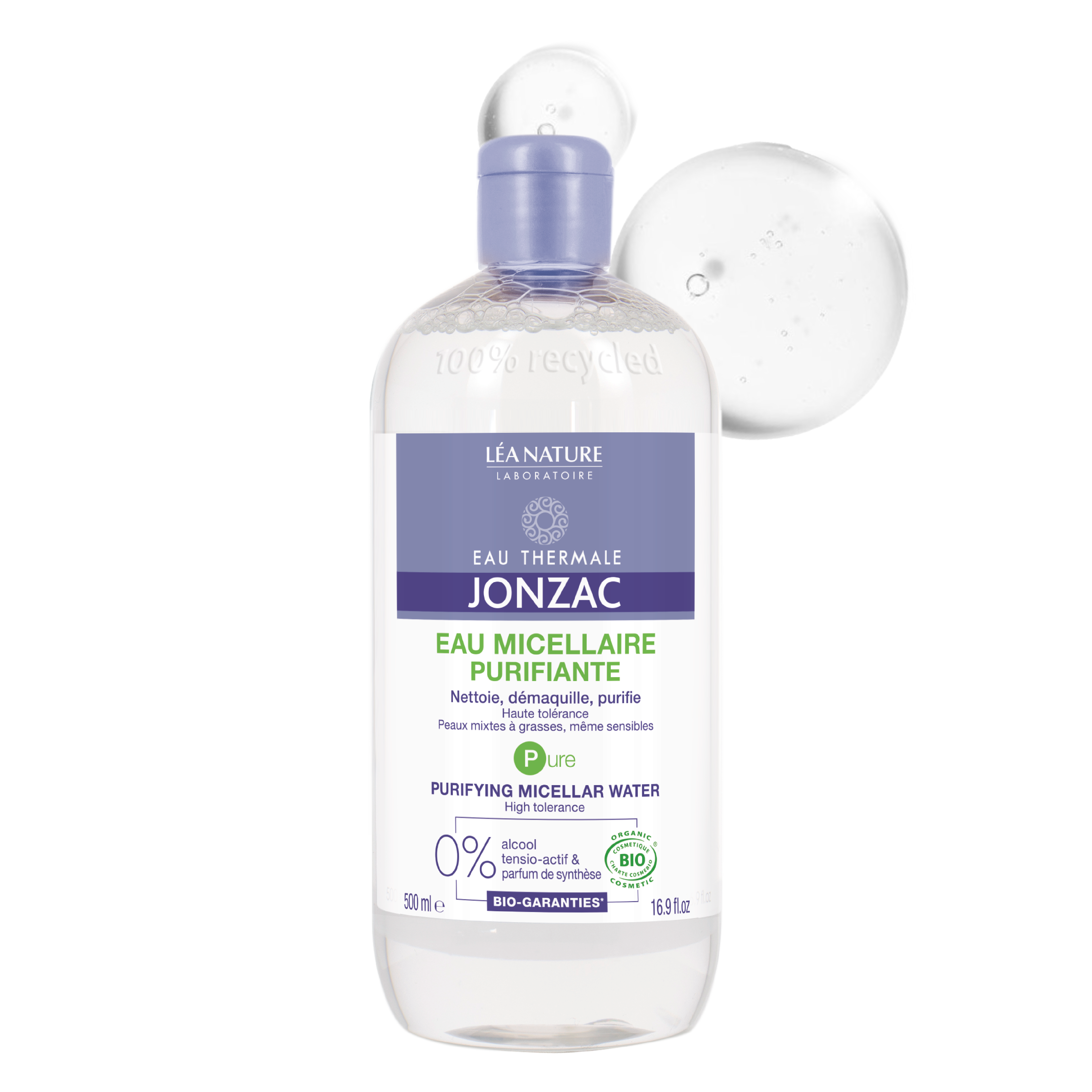 Esta Agua Micelar Purificante de Eau Thermale Jonzac® limpia y purifica sin secar la piel. Las micelas contenidas en el agua drenan las impurezas y el maquillaje residual mientras calma la piel y ojos sensibles. Rica en agua termal de Jonzac, zinc (desinfectante natural) y hamamelis orgánica (astingente), limpia y purifica las pieles mixtas y grasas, así como como las sensibles.
