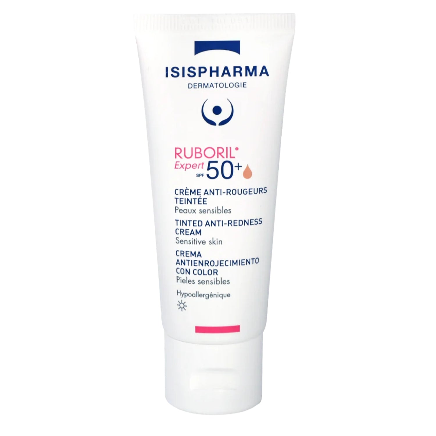 Ruboril expert SPF 50+, crema con color, le ayuda a tu piel a combatir los enrojecimientos mientras la protege de los rayos solares.