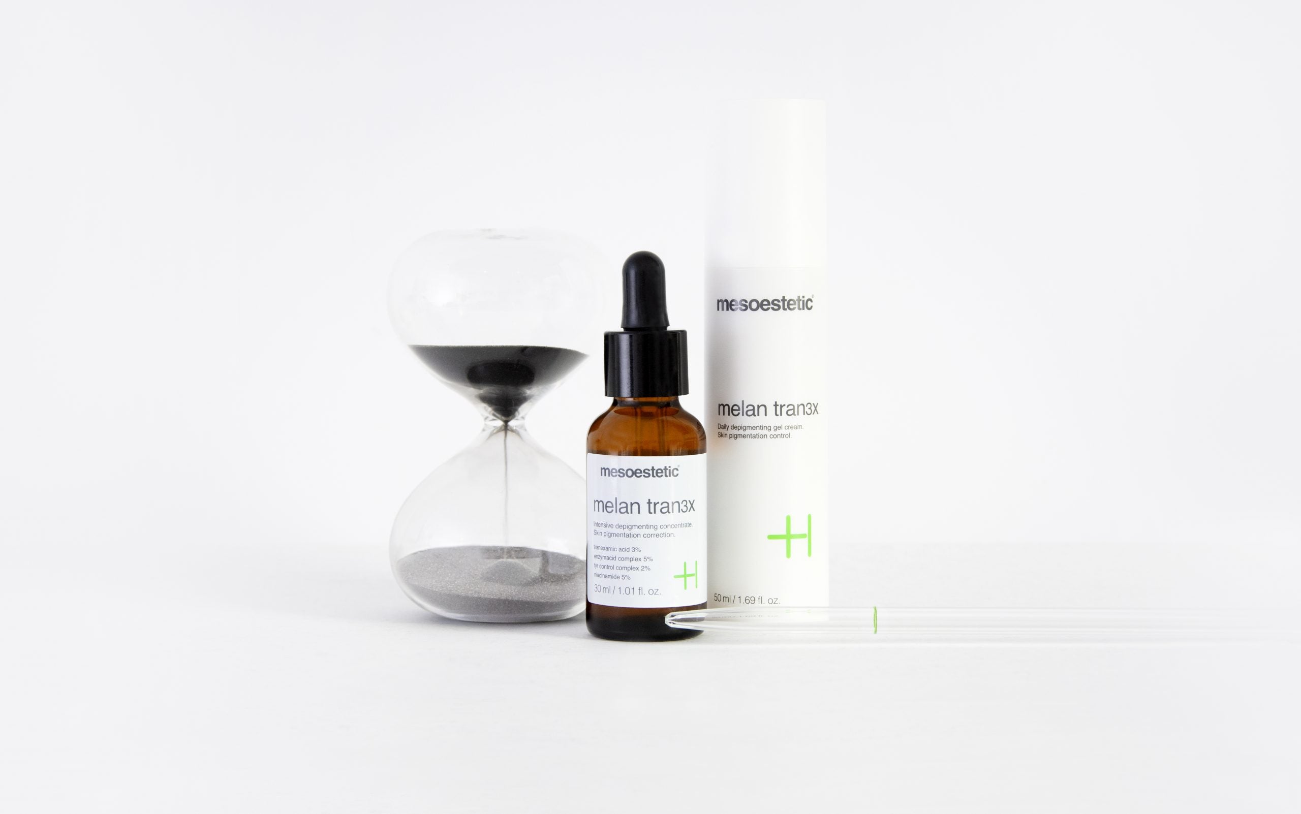 Concentrado o sérum despigmentante intensivo con ácido tranexámico que actúa sobre el exceso de pigmentación, atenuando visiblemente las manchas oscuras en la cara.