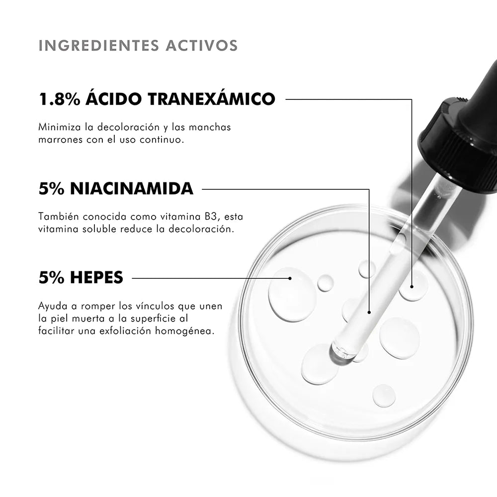 Descripción del Producto: El Skinceuticals Discoloration Defense es un sérum despigmentante de uso diario diseñado para tratar la hiperpigmentación y las manchas oscuras más persistentes. Su fórmula avanzada combina 3% de ácido tranexámico, 5% de niacinamida, 1% de ácido kójico y 5% de HEPES, ingredientes que trabajan en sinergia para reducir la apariencia de manchas, prevenir su recurrencia y mejorar la luminosidad de la piel. Ideal para todo tipo de piel, este sérum es una solución efectiva para lograr un tono uniforme y radiante.