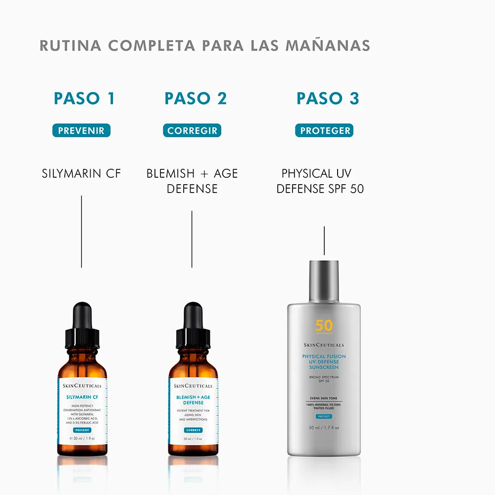 Skinceuticals Silymarin CF es un sérum antioxidante avanzado diseñado específicamente para pieles grasas y propensas a imperfecciones. Su fórmula única combina 0.5% de silimarina (extracto de cardo mariano), 15% de ácido L-ascórbico (vitamina C pura), 0.5% de ácido ferúlico y 0.5% de ácido salicílico. Este poderoso tratamiento ayuda a prevenir la oxidación del aceite en la piel, reduce la oleosidad, minimiza los poros y mejora la textura y claridad de la piel.