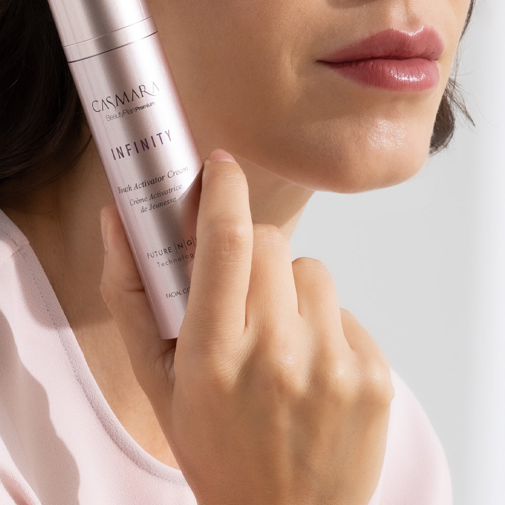 Inifnity Cream es el cuidado global diario con efecto lifting y acción ultrarejuvenecedora que desvanece arrugas y líneas de expresión. Su fórmula excepcional con ingredientes botánicos activa la renovación celular de tu piel, que recupera su luminosidad natural y fortalece sus defensas frente al envejecimiento. Los componentes wellness de Infinity Cream con propiedades relajantes y calmantes, eliminan el estrés y los signos de fatiga, para que disfrutes de tu piel descansada todo el día.